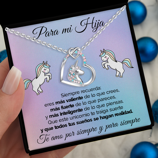 Collar de unicornio con tarjeta dedicatoria "Unicornio de la Suerte"