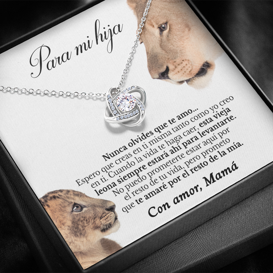 Collar de nudo con tarjeta dedicatoria "Nunca olvides que te amo" - Leonesa